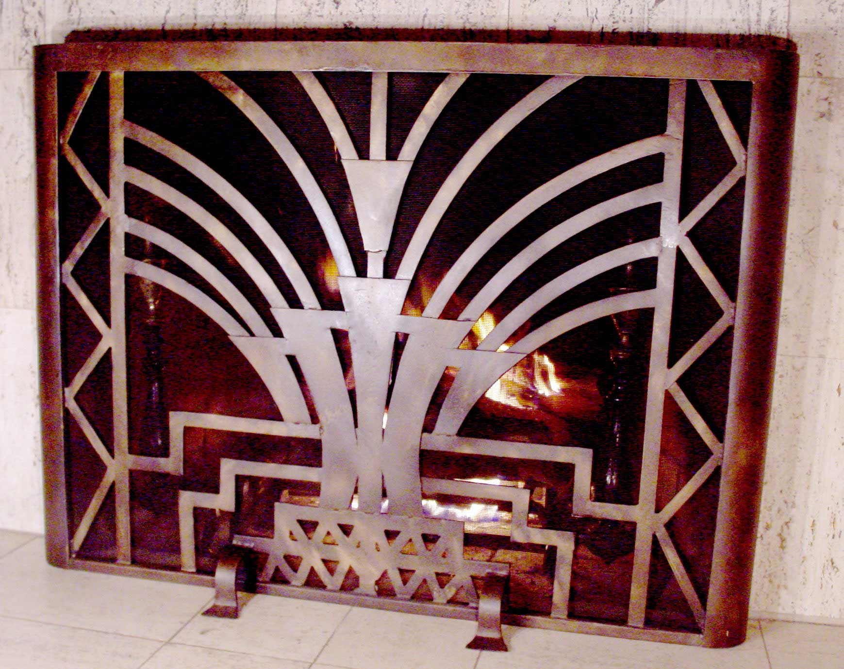 This is a beautiful example of Art Deco style in a functional fireplace screen. It's sleek, streamlined form connotes elegance and sophistication. Curved sides accentuate the period look. Each screen is backed with closely woven wire mesh to help stop sparks.